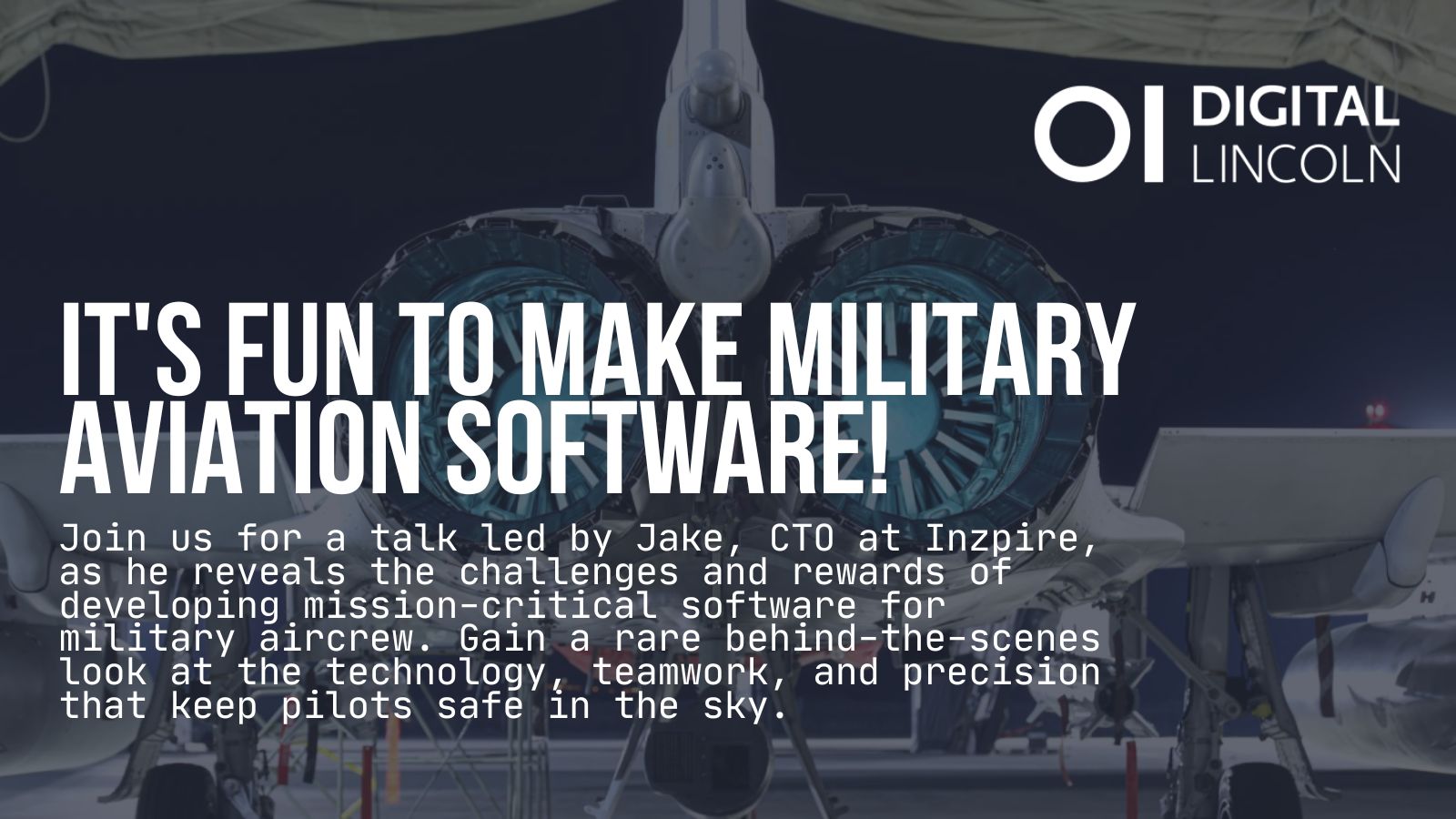 Join Digital Lincoln for a fascinating talk with the CTO of Mission Systems at Inzpire, as they explore the high-stakes, challenging, and rewarding world of developing software for military aircrew.